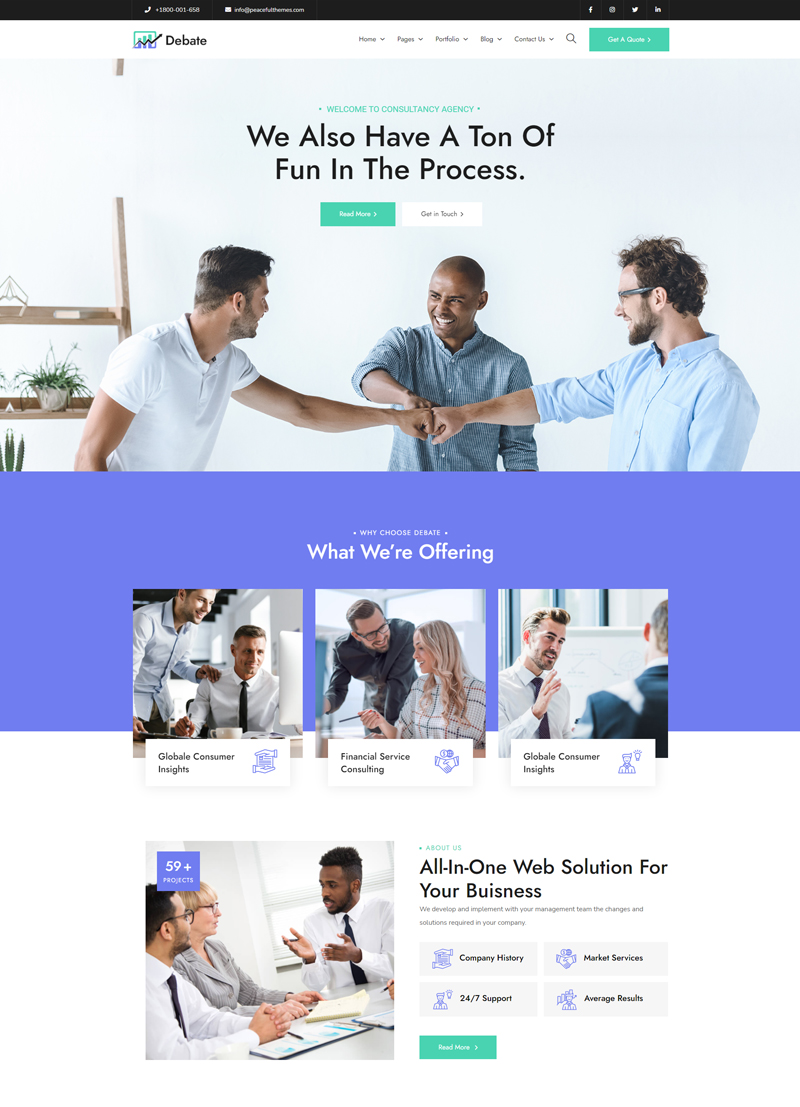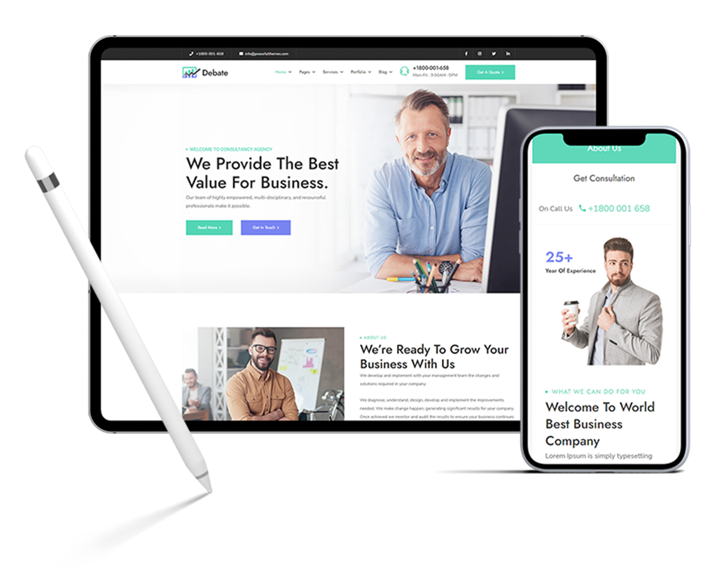 The responsive design appears as a way to provide equal access to information regardless of device. Debate is fully responsive and will adapt itself to any mobile or tablet device.