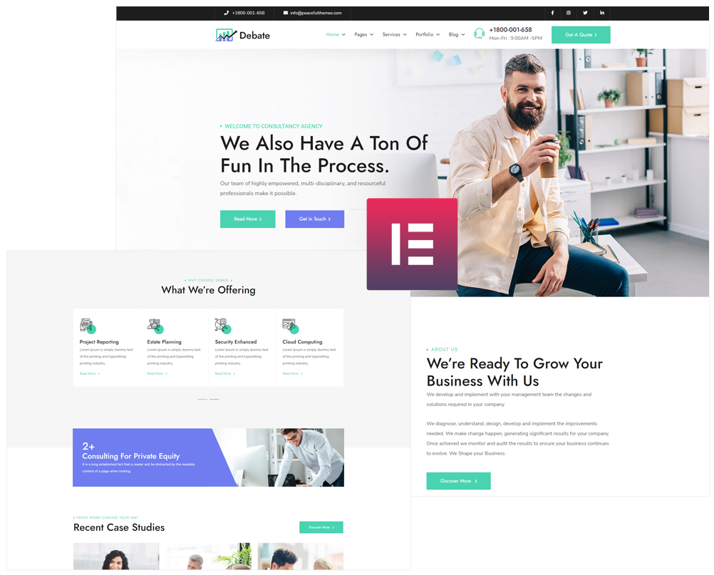 Elementor offers intuitive interface and flexibility. It is one of the most user-friendly page builders for WordPress. Customize your Debate template with ease using a set of additional elements.